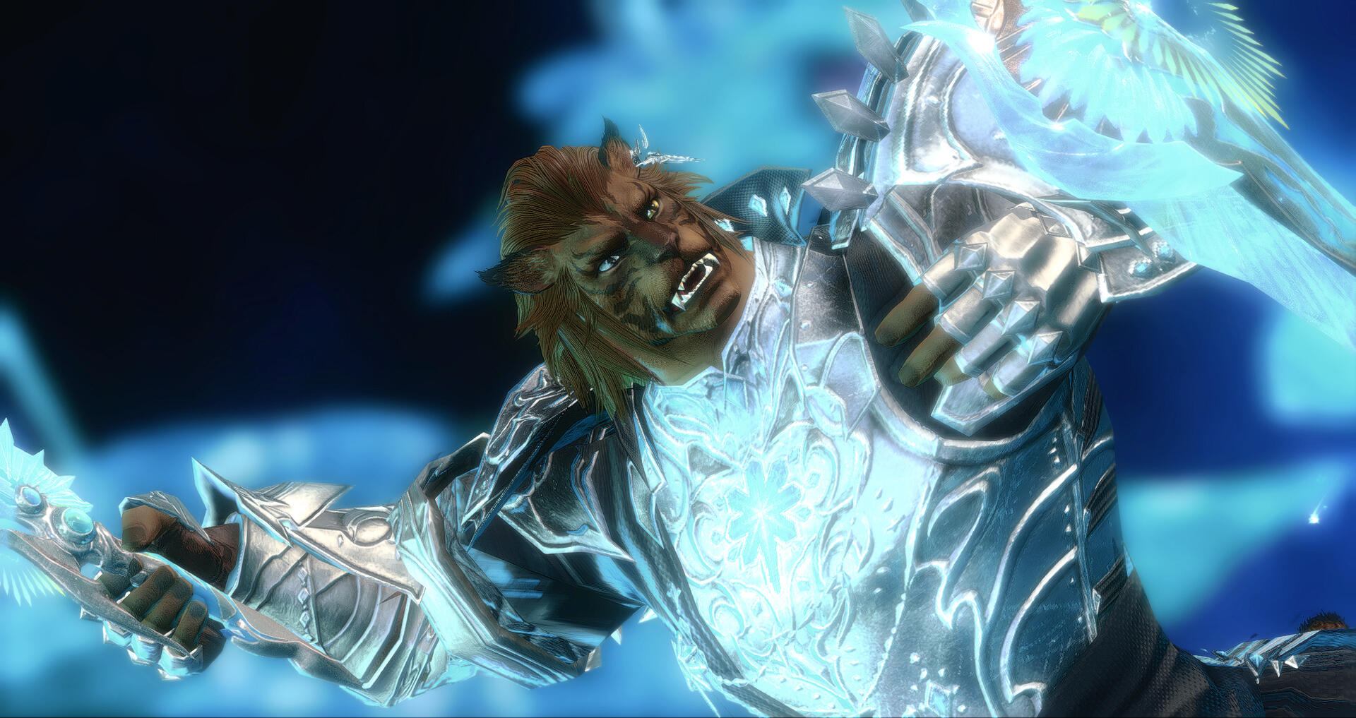 Born the son of the chief of a moderately sized Xbr'aali tribe in Yak T'el, Sven's childhood was pretty normal at its outset. His tribe didn't participate in the typical practice of primogeniture, the selection of succeeding rulers instead decided by a council of elders close to the end of the current chief's life. But as Sven began to grow into his own, his body transitioning from boy to man, his biological imperative became clear to those around him.As with the Mamool Ja to the south, his people lived under the promise of destined rulers who appeared once every couple hundred years; those fated to lead their people into a prosperous future rife with prosperity. They were referred to by the term "Ajaw" and were denoted by specific scent markers that emerged as they transitioned from children to adults. When Sven presented with those signs, the council declared him their next leader, replacing his surname with their identifier and entrusting his training to his father, until he could be entrusted with the responsibility.As his dad grappled with the living reminder of his eventual loss of power taking his place beside him, eyes bright and ready to learn, he began to confide in alcohol. And as alcohol loosened his inhibitions and heightened his frustrations, Sven became the object of a newly formed propensity towards violence. His father locked him away the second he was able to, forcing him into a solitary hut at the edge of the village, and justifying it with the promise of a private, concentrated education. Every visit his father made promised pain and harrassment, all in a dedicated attempt to break Sven's spirit and force him to relinquish his newfound role.He was forbidden from any education past what he'd received as a child, had a complex block placed on his core, restricting his latent and considerable ability to channel, and was fed only once a day, during his father's visits. On his 18th birthday, as stagnant aether within him bubbled over, changing one of his yellow eyes to a pale blue, he let out a bone chilling roar that shook the entirety of his village. The ground of Yak T'el rocked as a bright beam of blue light leapt into the sky, illuminating a cloudless, moonless night as brightly as the day. When his people went to check on the source of the beam, all they found was Sven's hut, burned to cinders by azure flame.Sven ran as fast as he could towards dirigible landing to the north having survived the blast of his own making. There, he caught the first airship back to Tulliyolal, making it to the city and managing to secure a low paying job as a bouncer due to his size and fearsome appearance. Eventually, though, his father found out where he was, sending a detachment of soldiers to drag him back home. Luckily, his closest friend managed to get him on a ship about to leave the city, destined for the distant land of Eorzea. There, he embarked on his current journey, learning as much as he can about life to try and make up for his lack of knowledge about the world around him, all while helping as many people as possible.