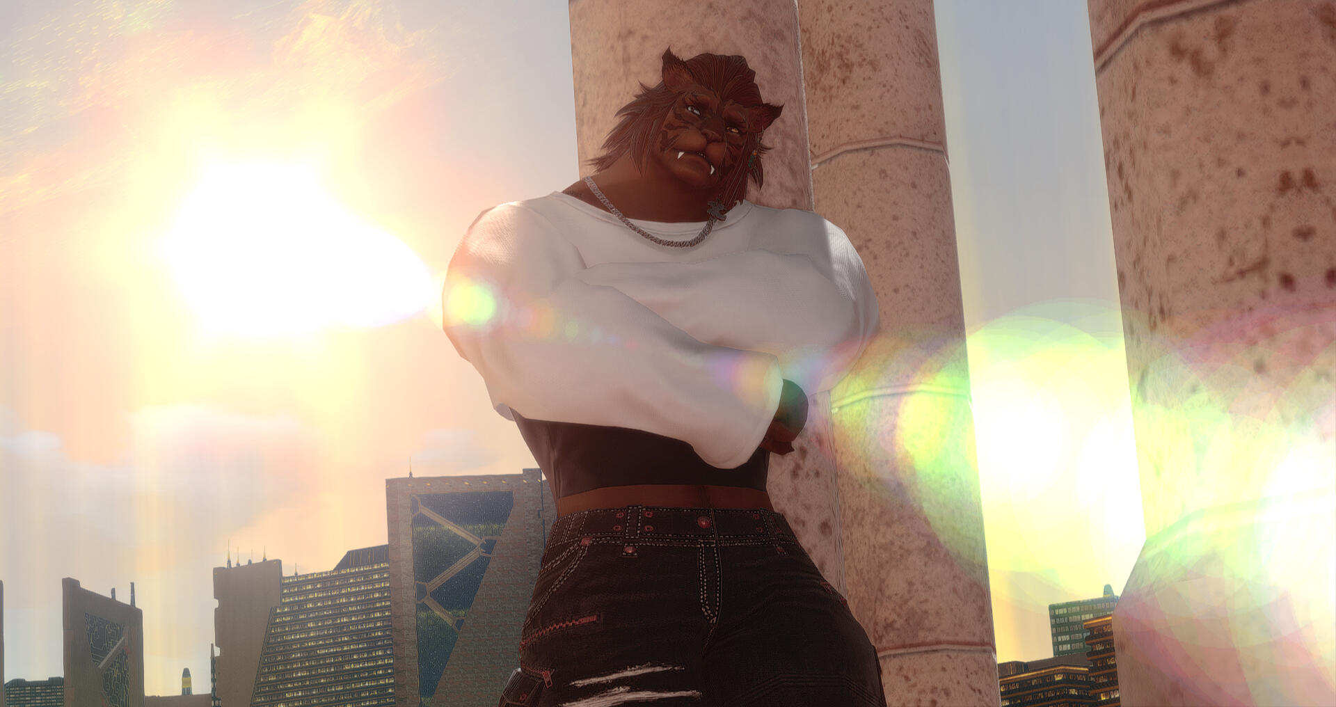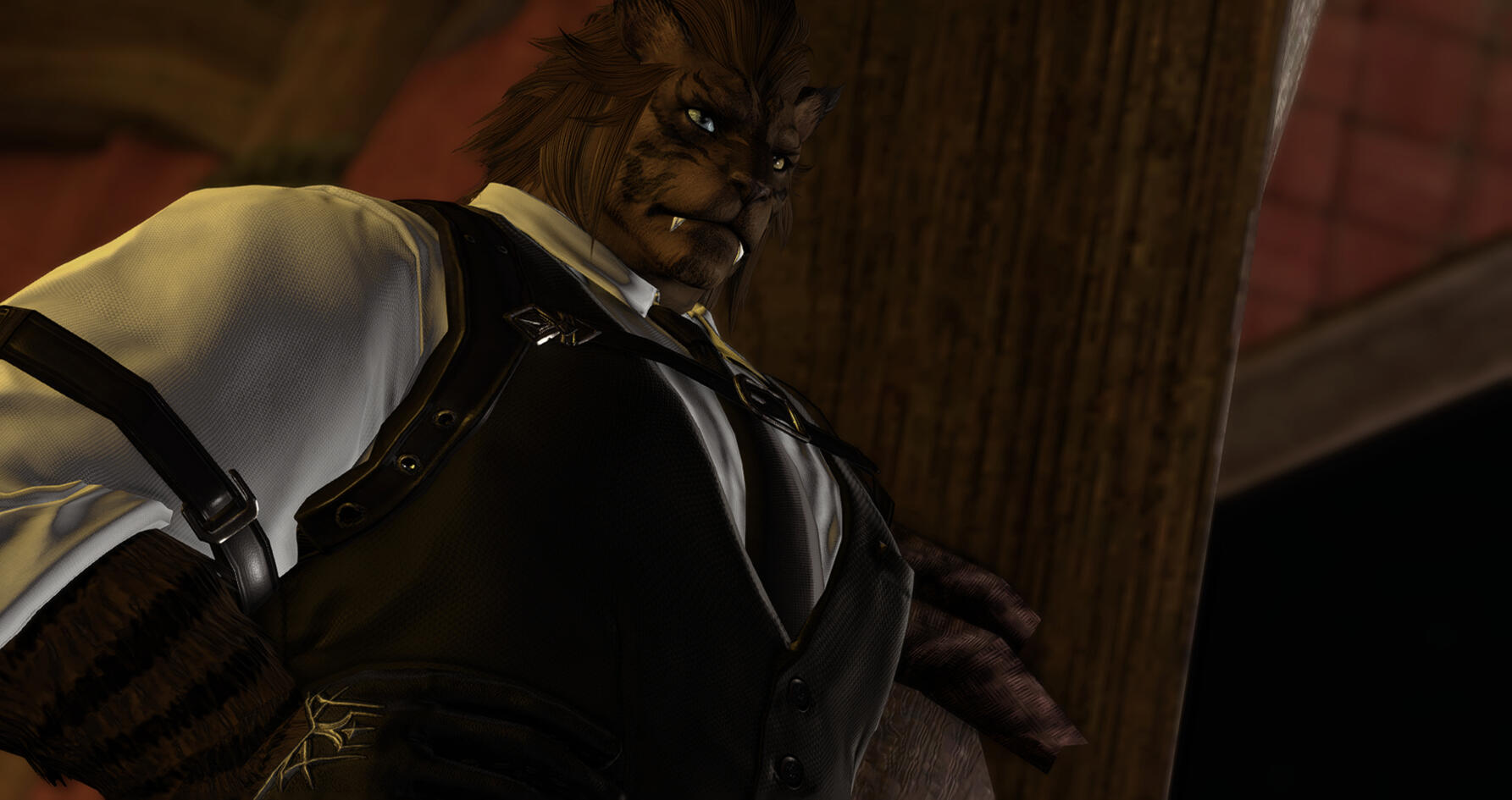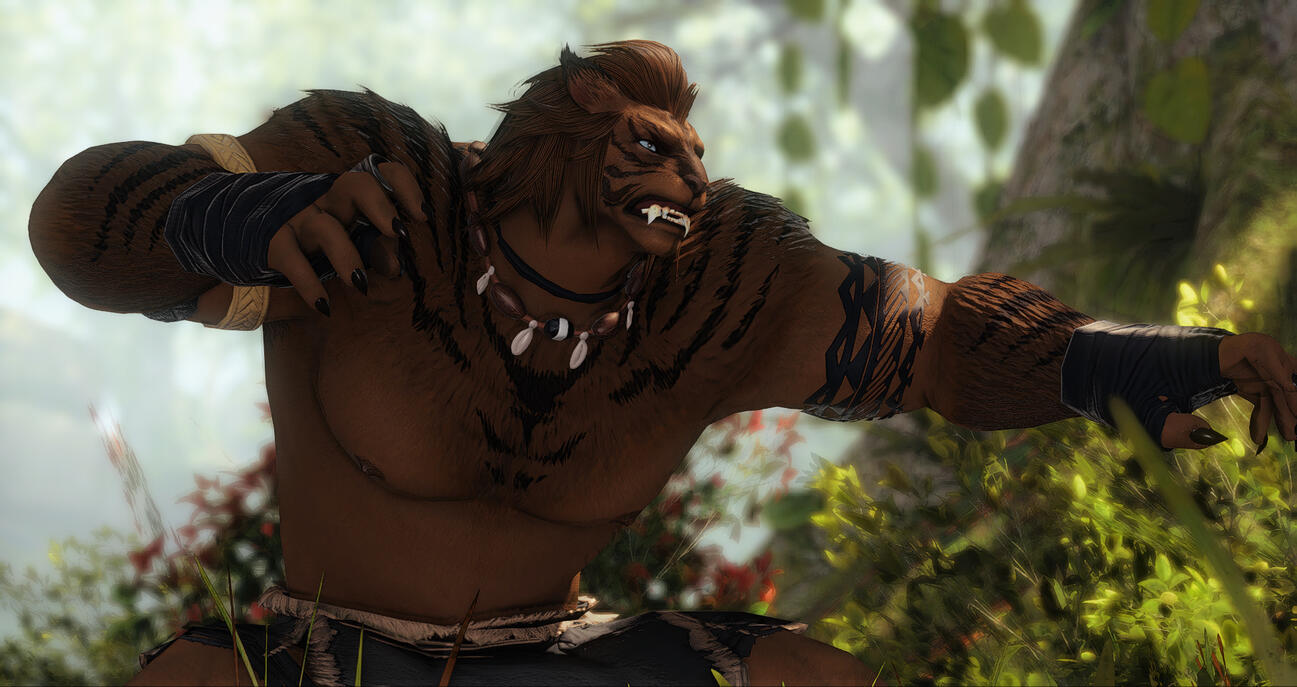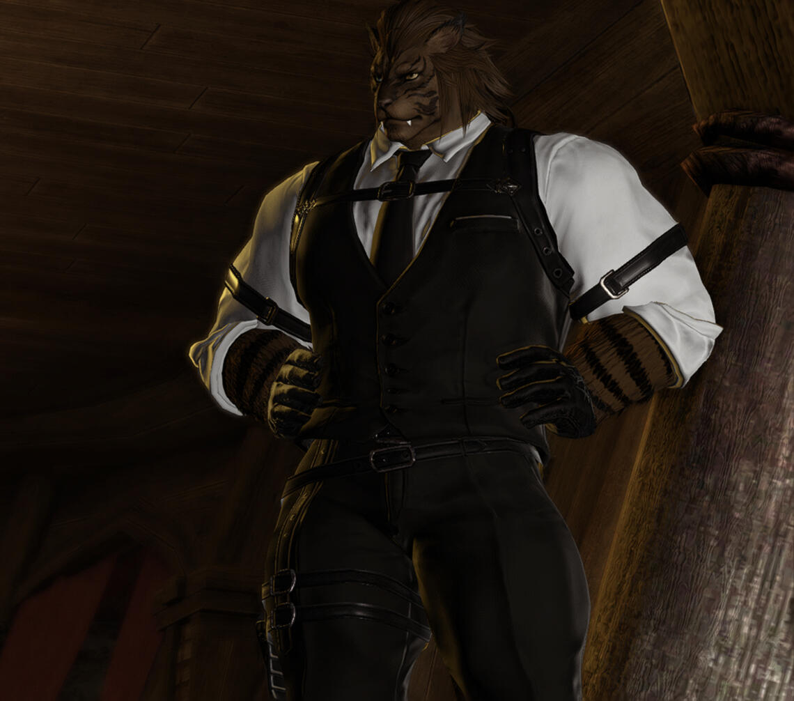 Hooks-Sven is an extremely talented blacksmith and armourer, learning and excelling in the crafts upon landing in Limsa. Need to complete a commission? In search of your dream armor, but unsure of where to start? He comes highly recommended from both Guildmasters, and has assorted flyers posted among the various city states.-Given his lineage and physical attributes, Sven excels at hunting! He has led multiple commission parties through dangerous territories in search of rare marks, always letting his client land the killing blow. He even assists the gleaners of Old Sharlayan should they need a particularly difficult to obtain specimen, meeting his deadlines no matter the obstacle, and always delivering his prey with a bright smile. Searching for something to put on your wall? In need of some fresh, hard to find meat for a new dish you're preparing? Eager to experience the thrill of the hunt without unnecessary danger? He advertises through the grand companies in Ul'dah, Limsa Lominsa, and Sharlayan, and shouldn't be too hard to find.-If you meet him early in his backstory, before he's driven from Tulliyolal, you can find him serving as a bouncer at a club! He's used to dealing with drunk patrons, so rest assured, you'd be in good hands should you bump into him and need an eager and attentive ear, a shoulder to cry on, or a simple walk home.-He's pretty hard to miss and can look rather out of place when he's lost. He's still getting used to life on the Eorzean continent, so if you notice a hulking cat wandering around an open market, crowded street, or back alley he probably shouldn't have gone down, chat him up! He'll always accept any help he is offered, even if he's a little afraid to ask for it, and you might find some excellent conversation by accident![Sven does have a WoL AU, should you desire to interact with that. I know it isn't most people's thing, but if you're interested, he's got some pretty cool lore! I love talking to people about their WoL's too, so feel free to chat me up about that, even if you have no interest in rping them ^^]
